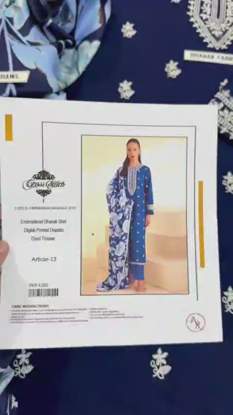 CROSS STITCH DHANAK 3PC EMBROIDERED