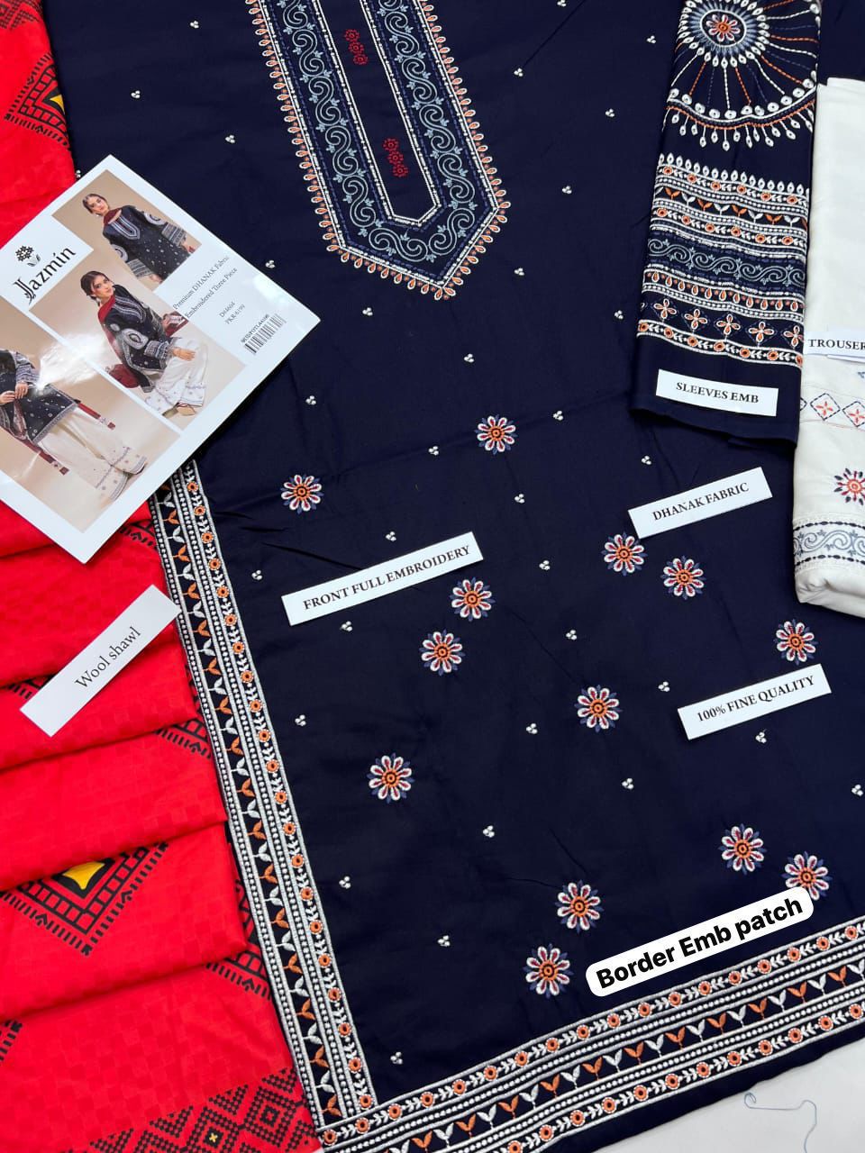 JAZMINE MOST DEMANDING EDITION 3PC DHANAK EMBROIDERED